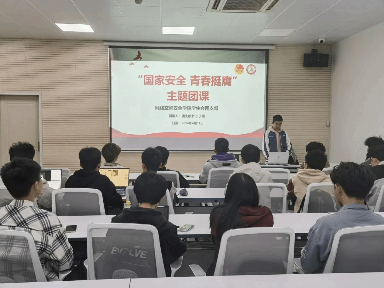 期间,丁晟带领大家学习了总体国家安全观的核心要义、五大要素和五对关系,帮助同学们理解和把握总体国家安全观。接着,丁晟介绍了国家安全观的定义,并激励网安学子应当承担维护国家安全的责任和使命,为祖国的“第五疆域”筑牢防线。最后,员工会团支部成员共同学习了全民安全教育大讲堂公开课。同学们纷纷发表了自己对于公开课的思考和感悟,只要人人投身其中,就必能筑起国家安全牢不可破的铜墙铁壁。