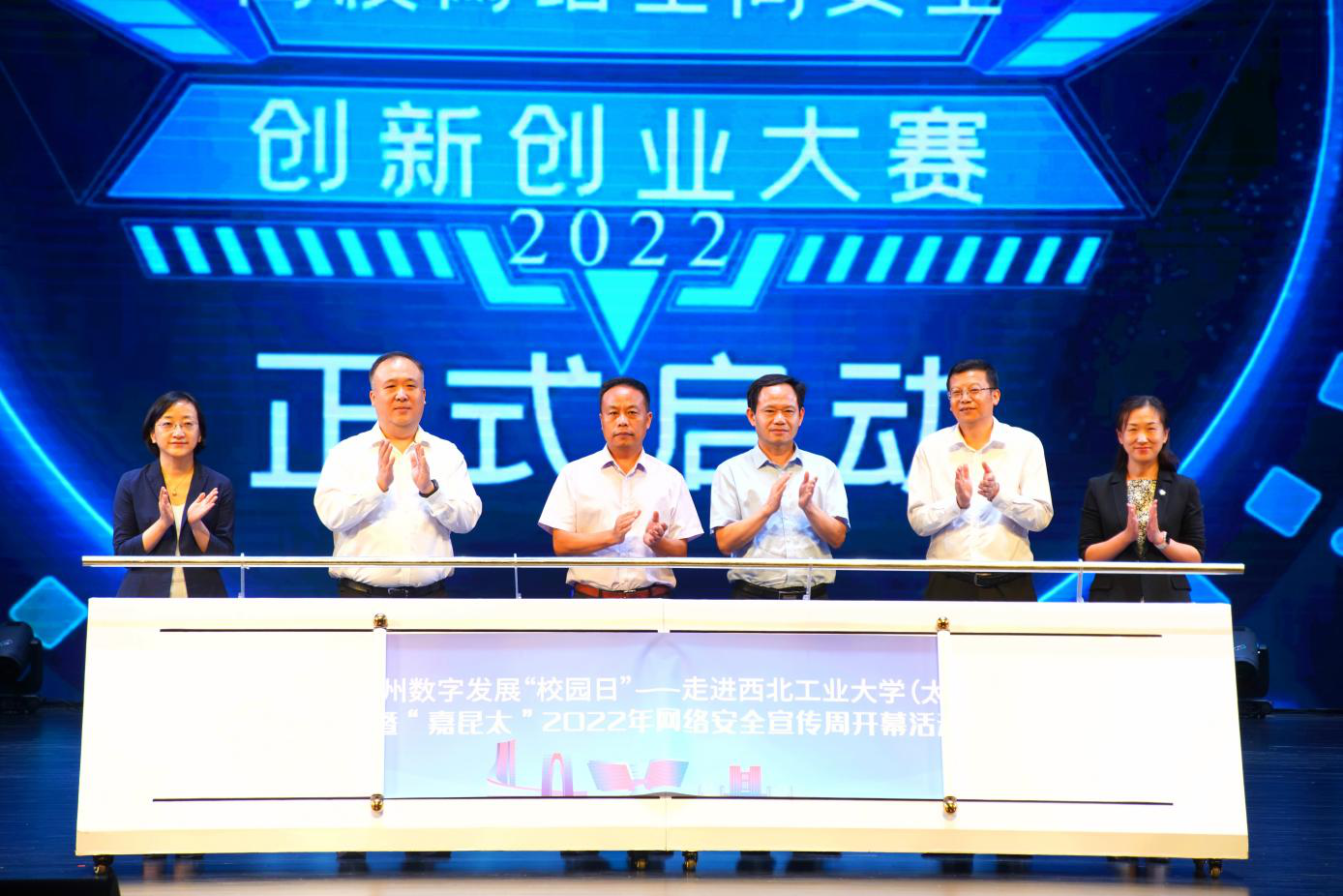 太阳成tyc122cc联手苏州市委网信办与太仓市网络综合治理中心,在太仓智汇港建设网络空间安全实习实训基地并揭牌,力求做到安全和发展协调一致、齐头并进,以安全保发展、以发展促安全,努力建久安之势、成长治之业。随着太仓智汇港领导、苏州市和嘉昆太网信办领导共同按下“嘉昆太”高校网络空间安全创新创业大赛暨“嘉昆太”2022年网络安全宣传周启动仪式的按钮,宣传周正式拉开帷幕。
