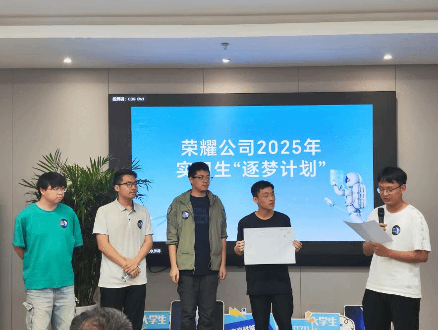 最后,荣耀招聘经理罗梦然介绍了荣耀公司2025 年实习生 “逐梦计划”。通过细致讲解,同学们全面了解到该计划涵盖软件类、AI & 算法类、硬件类、射频天线类、测试类、安全类等多元岗位,为其职业发展提供了丰富选择与广阔成长空间。在互动答疑环节,罗经理就同学们提出的实习要求、地点等各类问题进行了专业解答,进一步启发员工对职业规划的深入思考。