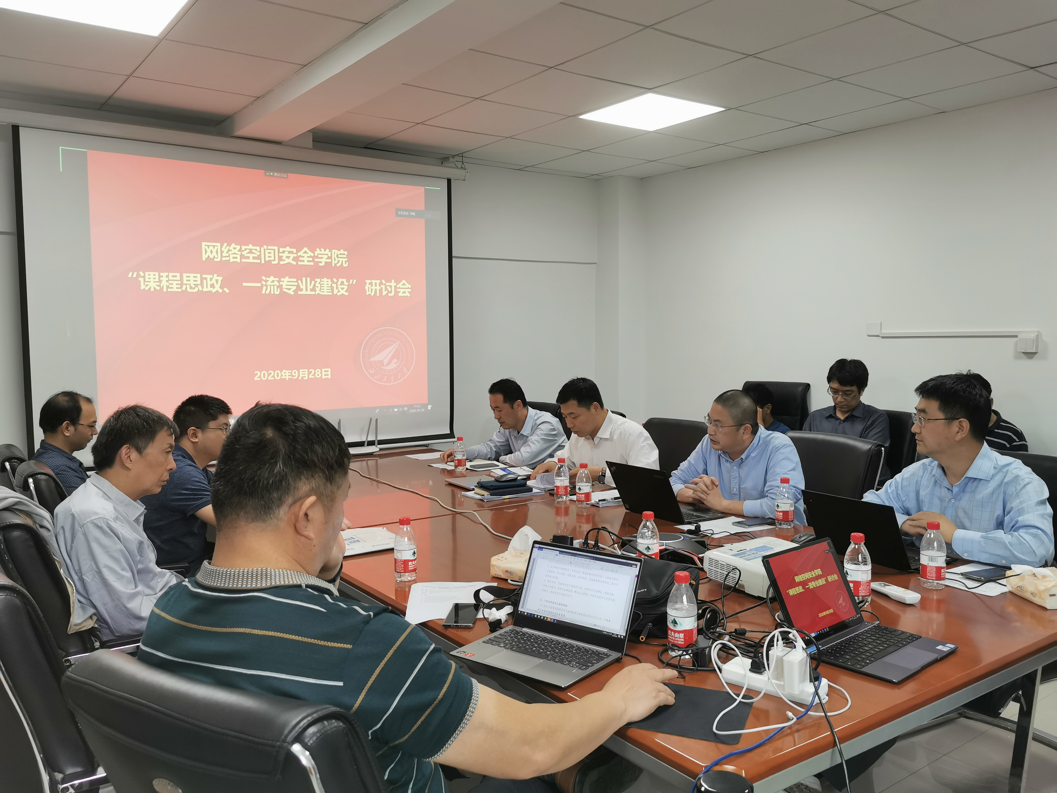 首先,专业核心课教学研究组代表——胡伟老师就信息安全专业培养方案、“一流专业”和“一流课程”建设、课程思政建设、实战型网安拔尖人才培养等几个方面汇报了前段时间小组成员就课程思政建设和人才培养等方面讨论得出的结果,提出要对照培养目标,细化本专业培养方案,着重体现专业特色;对标国际一流高校、瞄准一流示范网安公司、明确国家和企业人才需求进行一流学科和一流专业建设。