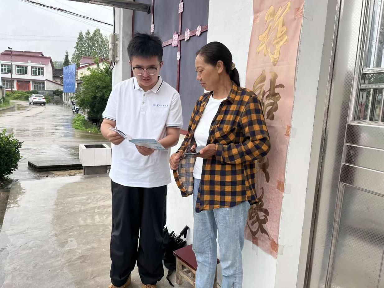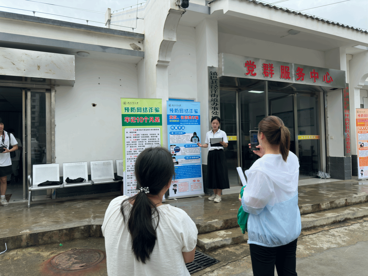 在城固县古路坝村,实践队手持精心制作的宣传手册,走进沿街商铺、居民院落,耐心地向村民们讲解常见的电信诈骗手段,用专业知识为乡村筑起反诈“防火墙”。