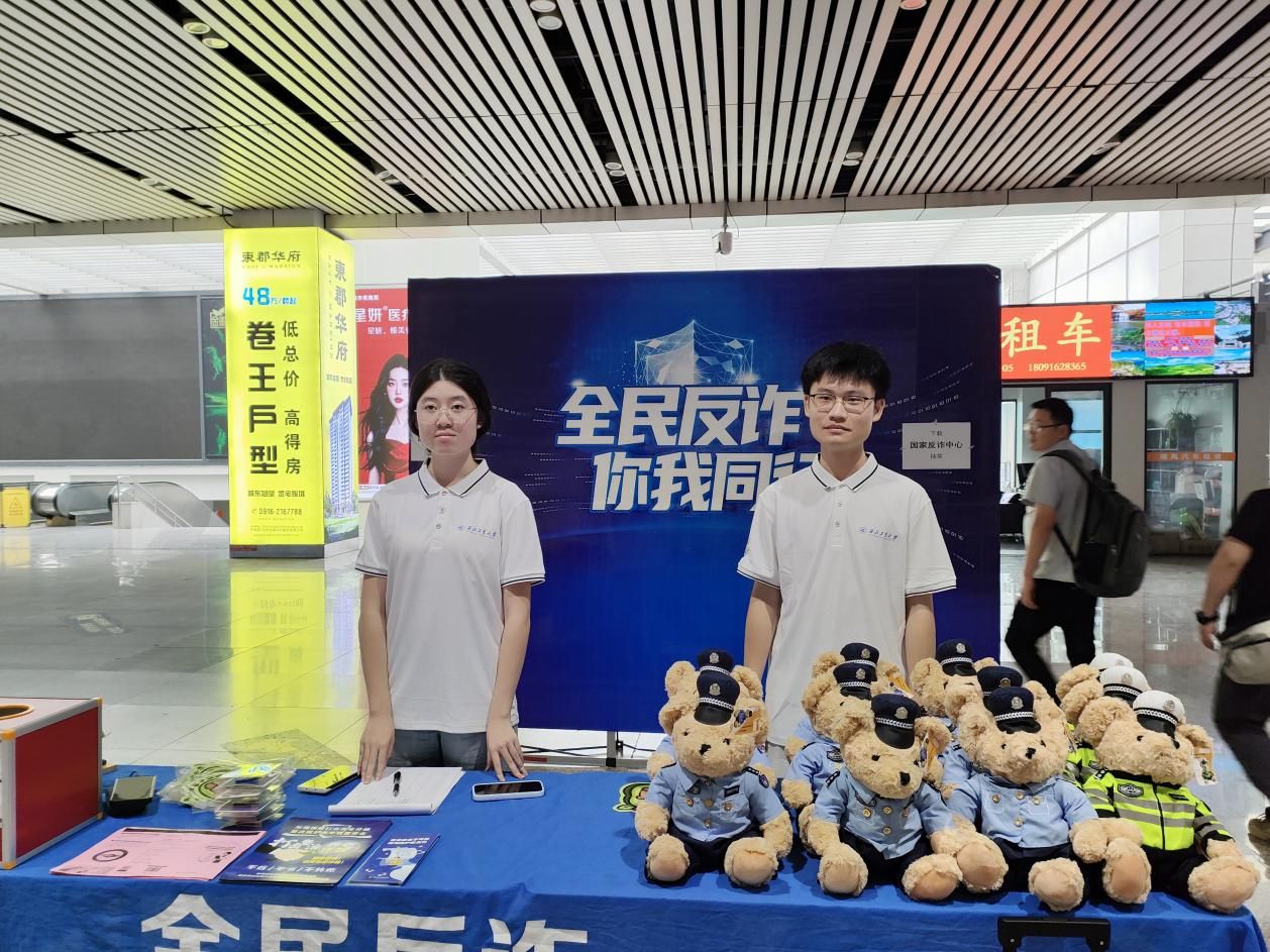 此外,实践队还在汉中市火车站等人流密集区域开展反诈宣传。在候车大厅,队员们通过发放宣传手册、设置咨询摊位等方式,将网络安全知识传递给每一位过往群众。