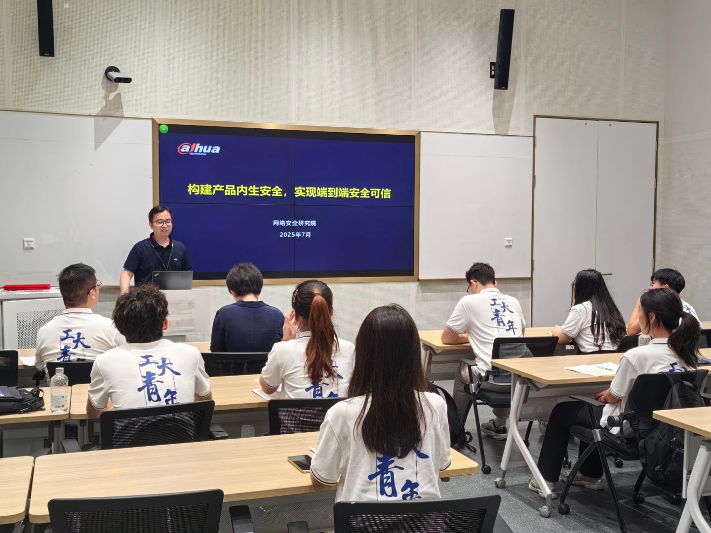7月8日,实践队走进大华股份,公司招聘经理丁迪系统介绍了公司的战略布局、企业文化及校招岗位需求,并强调期待与高校深度合作,共同培养网络安全人才。网络空间安全首席科学家张剑青以《构建产品内生安全,实现端到端安全可信》为主题,为实践队员进行了前沿技术分享。