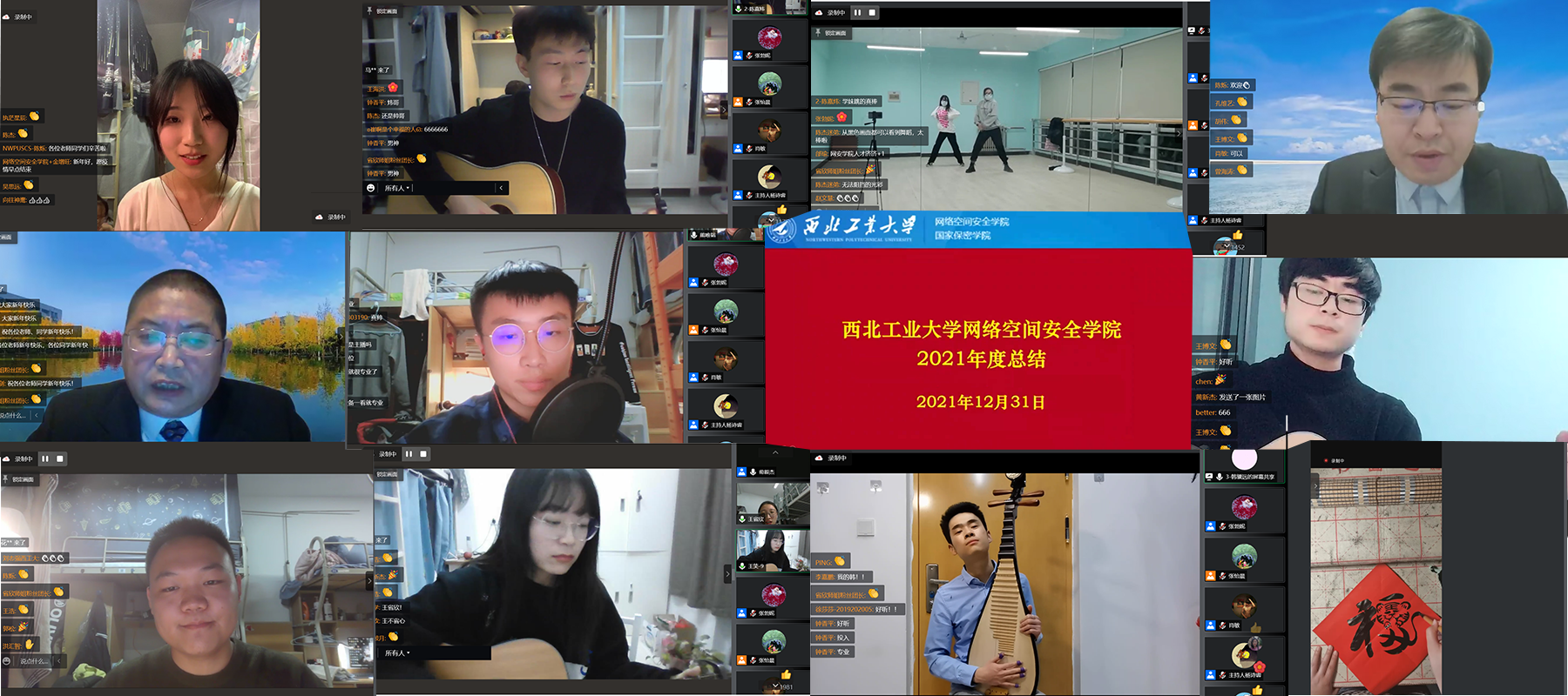 2021年12月31日21:00,太阳成tyc122cc以班级为单位组织召开了线上跨年晚会,晚会形式多种多样,有意义深刻的年终总结、有精彩绝伦的才艺表演、有激动人心的抽奖环节,通过集体晚会,增强了班级凝聚力,让大家体验了一次不同寻常的元旦晚会。