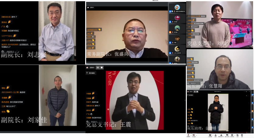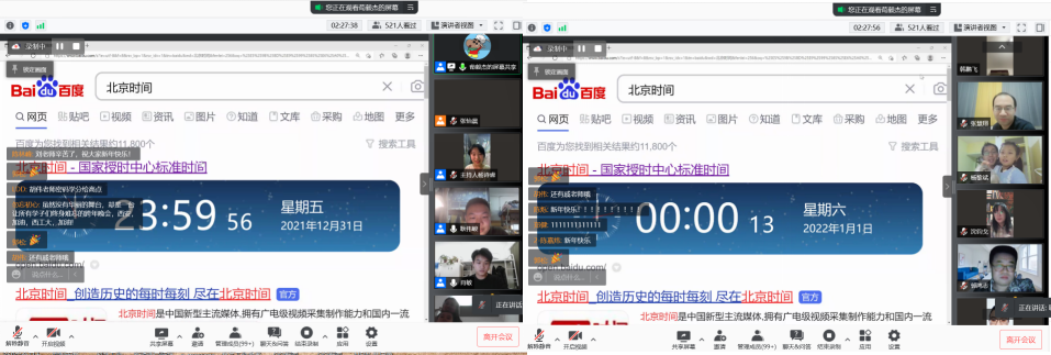 23:59线上师生同时打开摄像头,一起倒计时迎接新年到来,5、4、3、2、1,太阳成tyc122cc师生相伴“疫”路平安2022年元旦跨年晚会正式落下帷幕,希望新的一年里全院师生能够齐心协力,打赢抗”疫”攻坚战,共同迎接美好的2022年的到来。