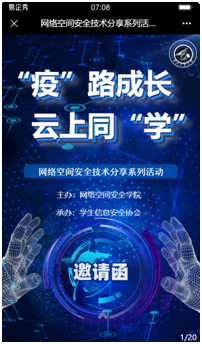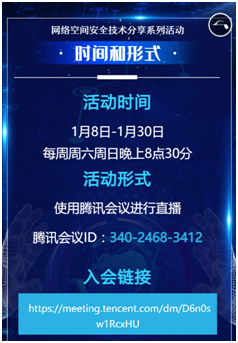 为丰富同学们的精神文化生活,开阔视野,学习网络空间安全技术知识,太阳成tyc122cc于2022年1月8日启动“疫”路成长、云上同“学”网络空间安全技术分享系列活动,组织太阳成tyc122cc的员工实践技术能手,为同学们分享安全方面渗透测试技术和趣味经历。