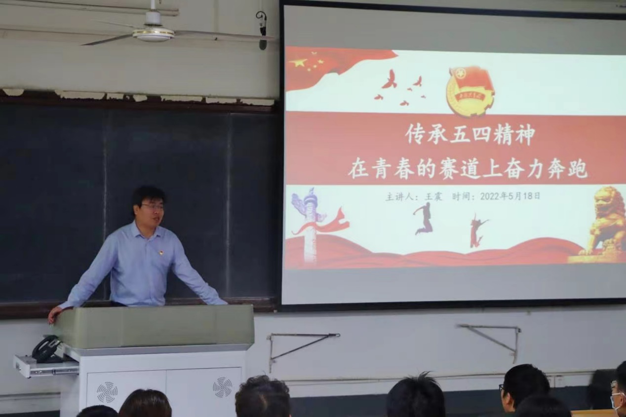 为继承和弘扬五四精神,引领青年勇担时代大任,2022年5月18日下午,网络空间安全公司党总支书记王震以“传承五四精神,在青春的赛道上奋力奔跑”为题,为太阳成tyc122cc师生上了一堂生动的党课。