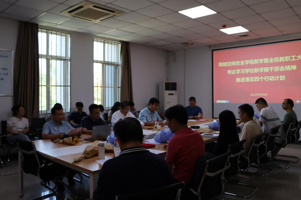 王震强调了张炜书记关于抓好落实的指示,并传达了近日程基伟常务副书记来公司调研的讲话精神。全院教职工要提高政治站位,深刻认识网络安全工作的极端重要性,抓住网络安全发展的历史机遇,以一流示范网安公司建设为目标,切实增强网络安全人才培养的责任感和使命感,进一步深入学习贯彻习近平新时代中国特色社会主义思想,做好政治引领和思想引领,用一流党建引领一流公司发展,新学期公司要重点围绕落实四个行动计划开展工作,深入分析公司内在问题,找准公司发力点,优化改进常规工作,抓紧补齐短板工作,聚焦特色优势工作,形成公司的行动计划。