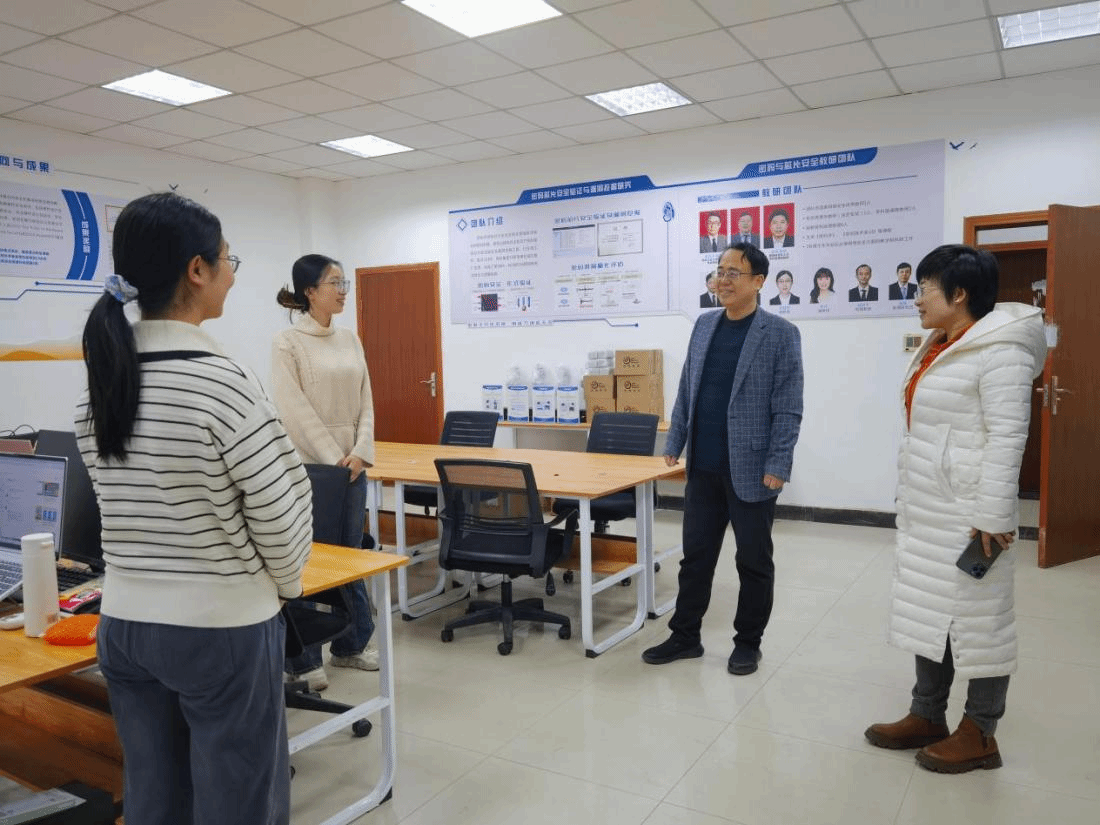 在教研室,检查组与员工面对面了解新学期在就业、科研、学习、生活方面的近况及困难,张文涛对各年级研究生在新学期伊始迅速投入科研工作的状态表示高度赞赏,指出当前我国网络空间安全领域人才缺口较大,这正是新一代青年学子奋发有为、投身这一领域的关键时刻,希望员工要立大志向、学真本领,为我国网络空间安全领域的建设与发展贡献自己的力量。