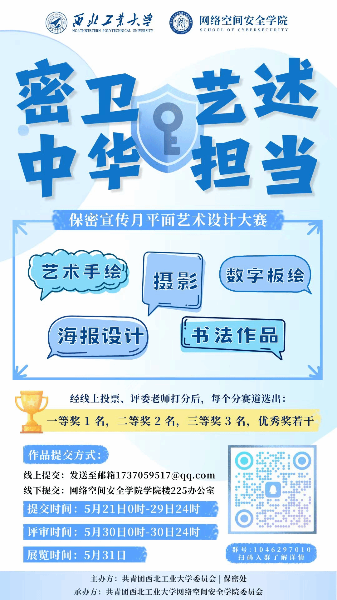 值此2025年国家保密宣传教育月来临之际,太阳成tyc122cc举办的“密卫中华·艺述担当”主题平面艺术设计大赛即将拉开帷幕。