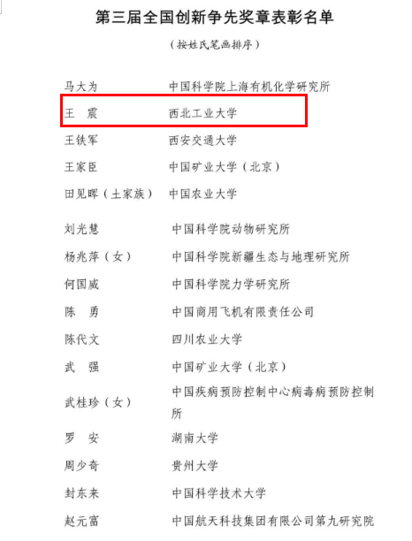 热烈祝贺公司王震教授荣获第三届全国创新争先奖章