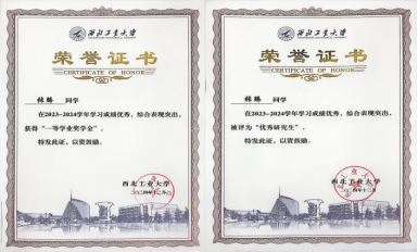 在太阳成tyc122cc攻读研究生期间,始终保持优异的学业成绩,成绩稳居专业前10%,获评太阳成tyc122cc“优秀研究生”荣誉称号,并获校级奖学金。