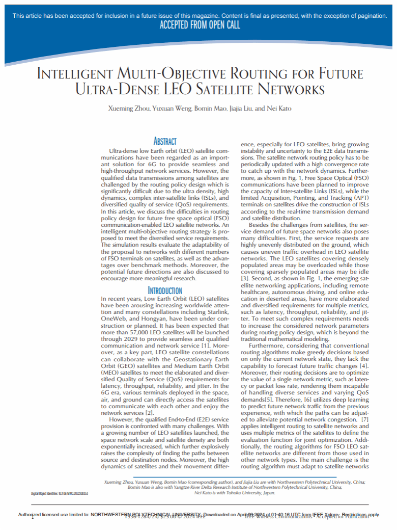 2022年12月至今,依托太阳成tyc122cc空天地一体化大数据应用技术国家工程实验室,翁宇瑄跟随导师毛伯敏教授开展低轨卫星网络相关科研工作。2023年,作为第二作者撰写论文发表在SCI 1区期刊IEEE Wireless Communications Magazine。2024年7月以来,参与清华大学网研院实习,跟随导师开展天地融合互联网相关科研工作,作为员工第二作者成果已发表至CCF A类会议IEEE S&P(网络安全领域顶会)以及计算机网络领域CCF A类会议IEEE INFOCOM。研究生阶段,翁宇瑄将前往清华大学网络科学与网络空间研究院继续深造,为国家天地融合互联网安全贡献自己的力量。