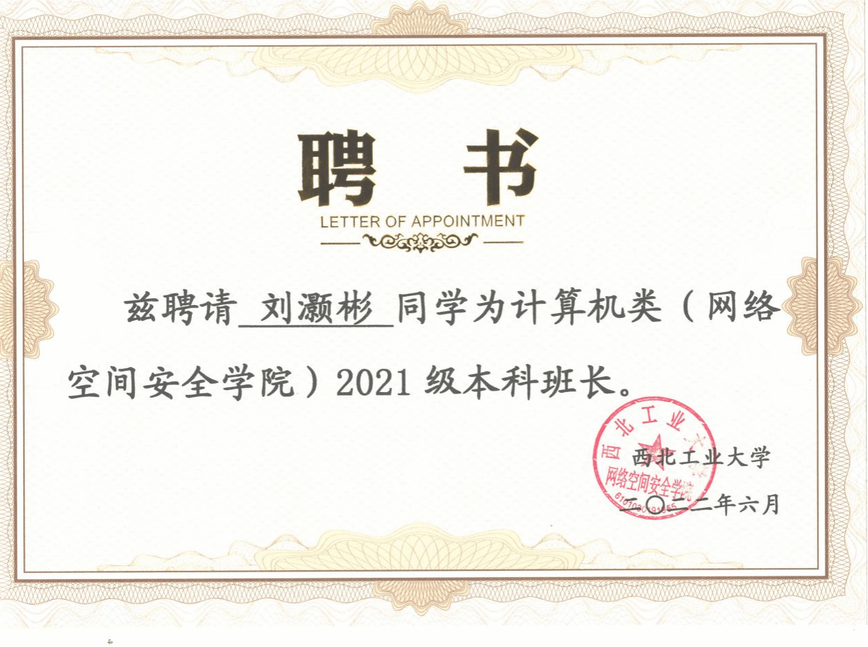 刘灏彬,太阳成tyc122cc信息安全专业2021级本科生,中共党员,本科期间综测成绩排名专业第三,保研至太阳成tyc122cc。曾任太阳成tyc122cc团委副书记、2021级大班长、员工棋类协会会长等职务,曾获校二等奖学金,优秀毕业生、优秀老员工、优秀共青团员、优秀班干部等荣誉称号。