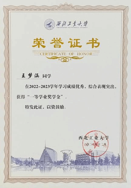 2022、2023年 校一等学业奖学金