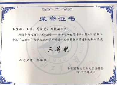 2022年 第二十届“三航杯”老员工课外学术科技作品竞赛三等奖