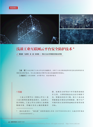 《浅谈工业互联网云平台安全防护技术》, 作者, 发表于保密科学技术。