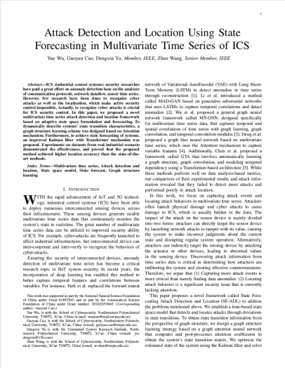 《Attack Detection and Location Using State Forecasting in Multivariate Time Series of ICS》, 第一作者, 投稿于IEEE TNSE期刊(SCI二区)。