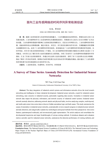 《面向工业传感网络时间序列的异常检测方法综述》, 第一作者, 投稿于网络与信息安全学报。