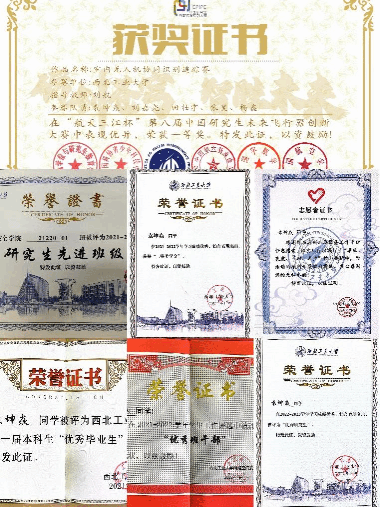 除了在社会工作方面的卓越表现,袁坤焱同学在科技竞赛中也取得了令人瞩目的成绩。作为团队队长,她带领团队参加了第八届中国研究生未来飞行器创新大赛,凭借出色的创新能力和团队协作能力,获得了挑战赛道第一名的优异成绩,为公司争得了荣誉。
