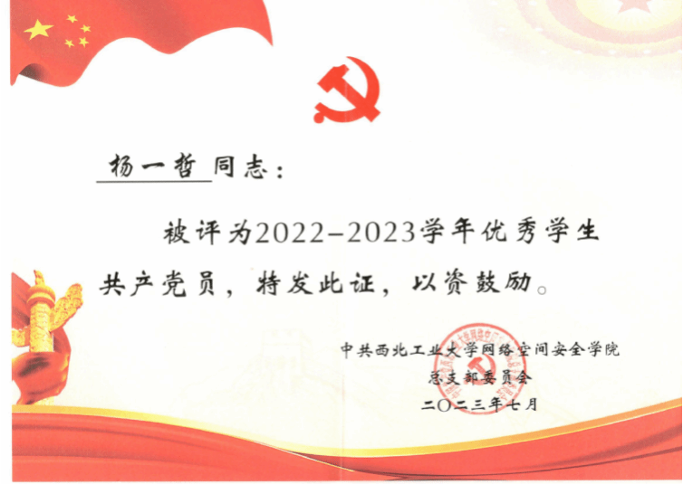 在综合素养方面,杨一哲时刻牢记作为一名共产党员,全心全意为人民服务的初心和使命,积极参与各项员工工作和志愿活动。作为太阳成tyc122cc员工第七党支部宣传委员兼纪检委员,杨一哲积极参与员工党建工作和支委培训,并协助书记、副书记,推动积极分子、发展对象的培养和发展党员的工作。此外,她还还负责支部的党费收缴工作。同时,作为太阳成tyc122cc研究生会内务部部长,杨一哲协助员工会举办心理游园活动。作为班级团支书,负责传达团务信息,并组织开展团务活动。在疫情期间,杨一哲积极担任志愿者,参与到疫情防控工作中,负责星B的物资配送、协调以及进出人员管理,以实际行动践行志愿精神,为抗疫工作贡献自己的力量。