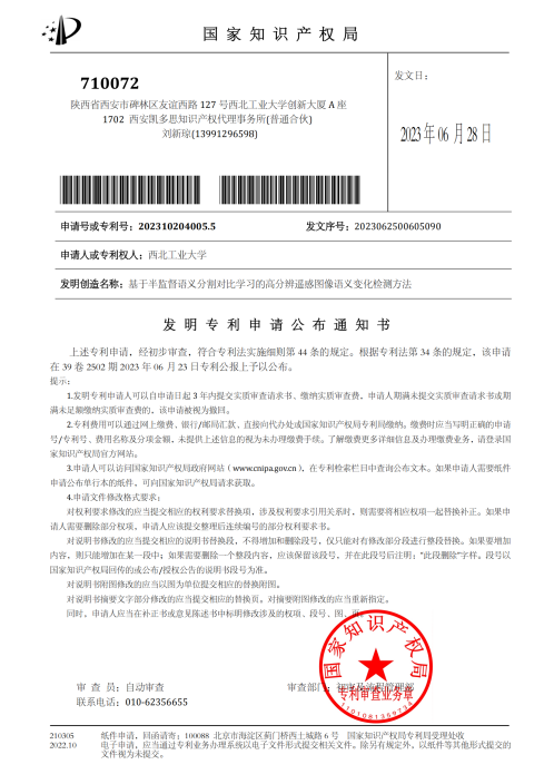 杨一哲,中共党员,网络空间安全专业,师从张秀伟副教授,是课题组中基于多源遥感图像的不规则形态目标协同语义分割研究的主要成员,研究方向为遥感图像语义变化检测。在科研道路上,杨一哲不仅刻苦钻研,不畏艰难,更展现出了卓越的创新思维和独立科研能力,以员工一作的身份,取得一篇SCI一区论文和两项公开专利。