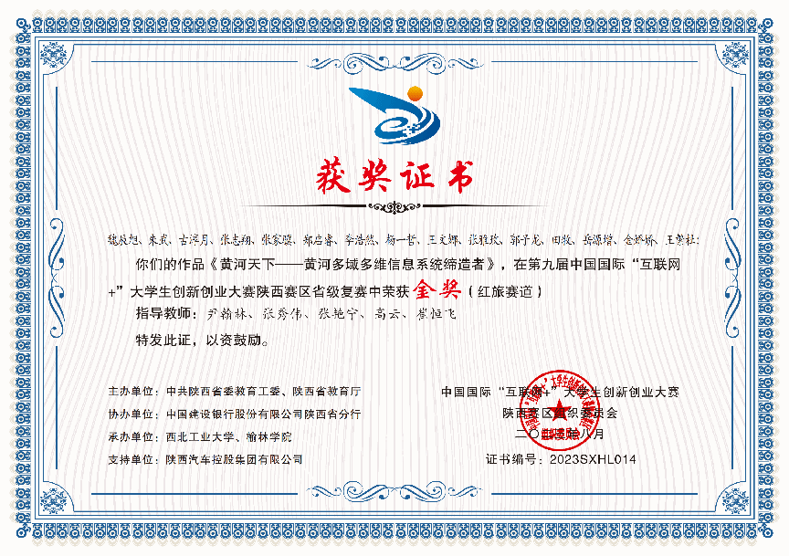 在科技竞赛方面,杨一哲作为队长,带领团队参加了第五届“中科星图杯”国际高分遥感图像解译大赛中的“高分辨率可见光图像中建筑物普查与变化检测”赛道。经过初赛和复赛的激烈竞争,团队设计的算法在赛方提供的数据集上展现出了优异的精度和速度,最终在总共176支队伍中荣获第5名的佳绩。同时,参与课题组“黄河天下-黄河多域多维信息系统缔造者”项目,共铸信息之剑,护黄河安澜,获得“互联网+”老员工创新创业大赛陕西省赛区金奖。