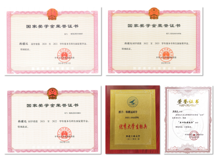 韩骥远四年总学分绩点始终保持年级第一,连续三年获评国家奖学金,获评校特等奖学金及优秀老员工标兵(全校本科生仅10人)和五四红旗标兵(全校本、硕员工仅10人),成为了2020级全校的首位“双标兵”。