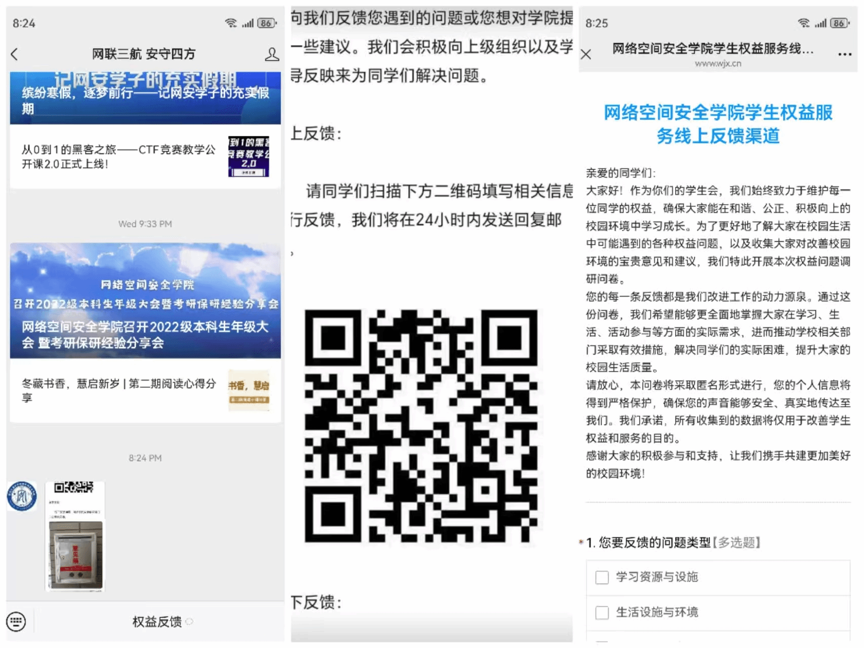 为全面畅通师生沟通渠道,及时回应同学们在学业发展、生活服务、校园建设等领域的意见建议,公司持续完善多元化反馈机制。现汇总反馈渠道如下,期待大家积极建言献策,携手共建美好校园。