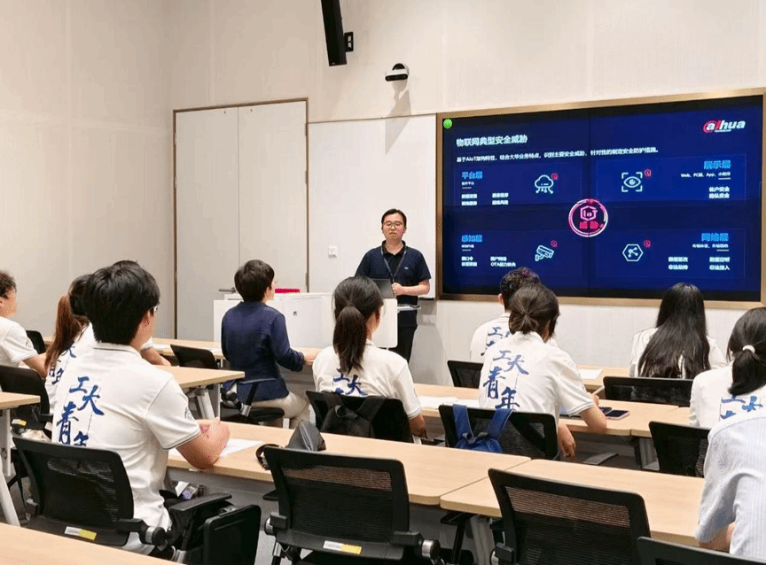 活动伊始,丁迪对实践队师生的到来表示热烈欢迎,并系统介绍了公司的战略布局、企业文化及校招岗位需求,并强调大华始终秉持‘技术驱动、安全赋能’的理念,期待通过与高校的深度合作,共同培养‘懂技术、会实战、有情怀’的网络安全人才”。