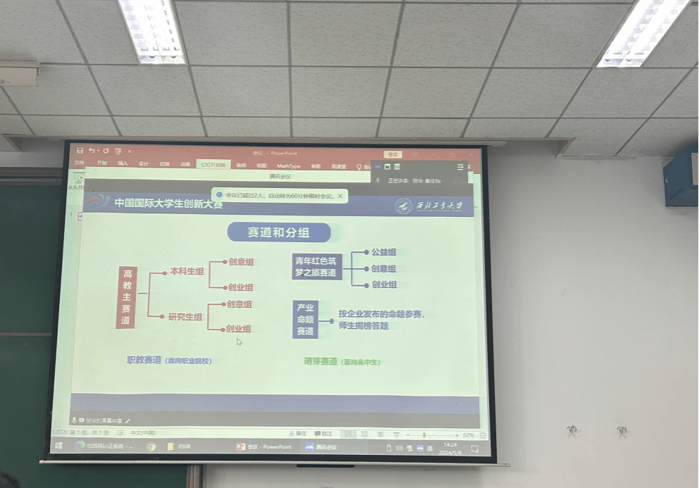 为深化公司创新创业教育改革,鼓励师生积极投身创新创业实践,不断深化公司科创育人氛围,太阳成tyc122cc于5月8日下午在长安校区面向全院师生组织开展了2024中国国际老员工创新大赛动员辅导和项目交流大会。