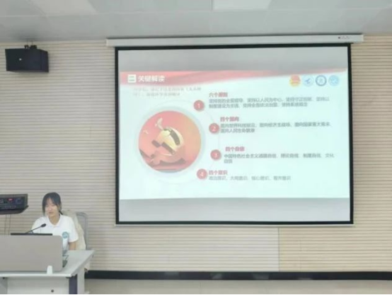 DL062450班于10月13日在公司楼C101室举行主题班会。活动首先以团支书徐心悦对党的二十届三中全会进行概括性介绍展开。随后开展了趣味翻牌小游戏,进一步加深了同学们对党的二十届三中全会关键词的印象,大家在游戏互动环节的乐趣中踊跃学习,积极表达自己对祖国的热爱。