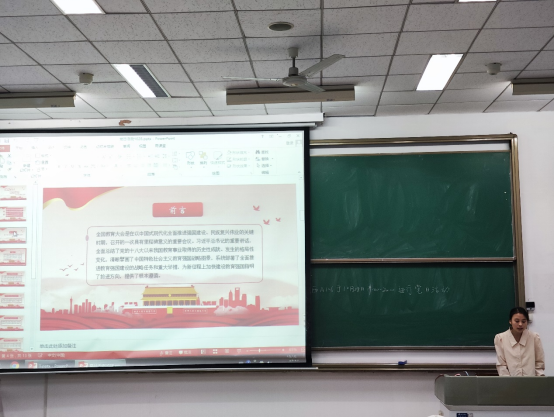 来自系统软硬件安全党支部的徐翠丽同学讲述了全国教育大会的核心内容及其重要意义,并带领大家重点学习了“习近平在全国教育大会上强调:紧紧围绕立德树人根本任务 朝着建成教育强国战略目标扎实迈进”这篇报道的重要内容。她呼吁大家要将全国教育大会精神内化于心、外化于行,不断提高自己的综合素质和能力水平,为未来的教育事业贡献自己的力量。