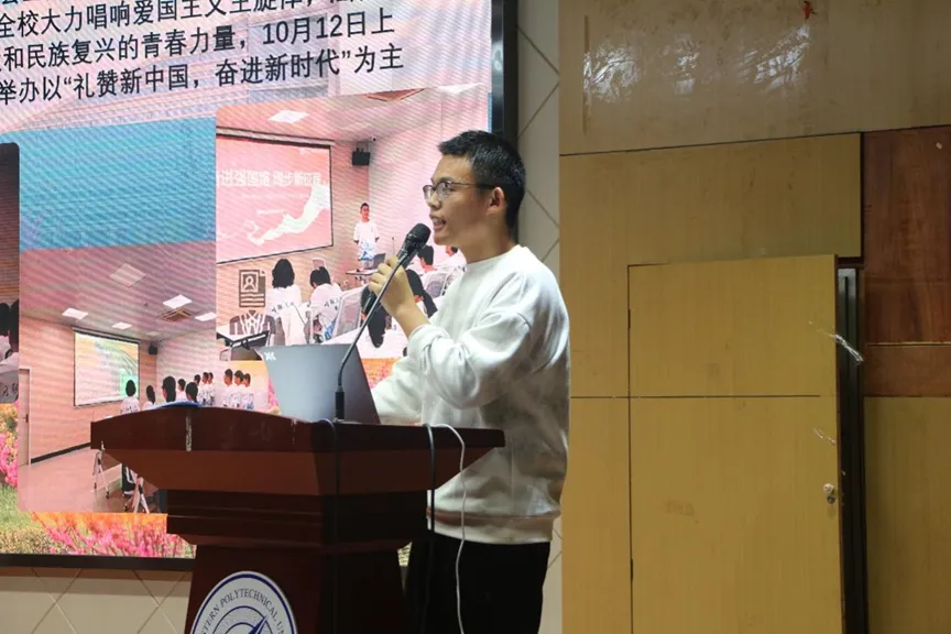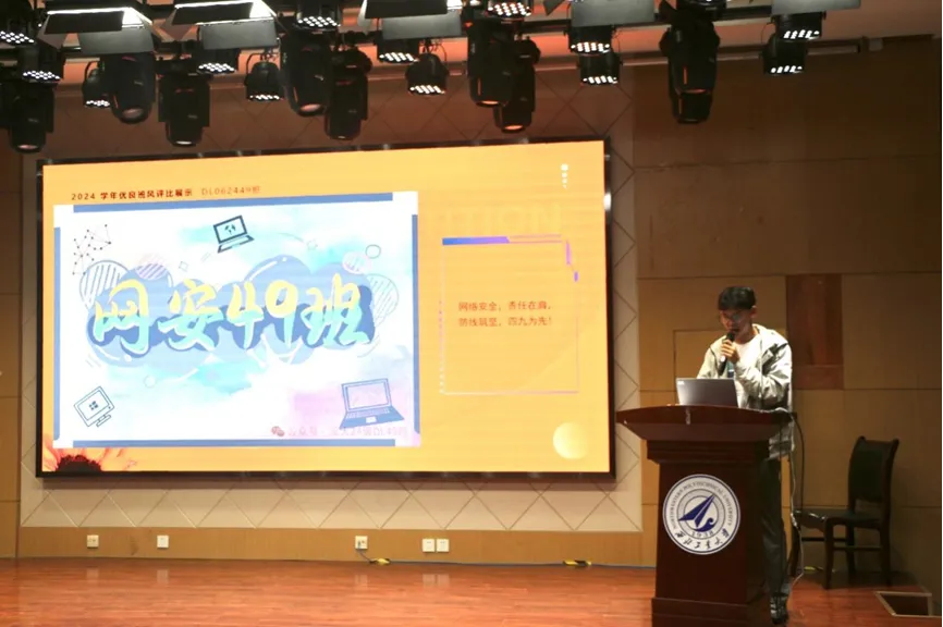 主持人介绍完比赛规则后,各个班级按照抽签顺序,现场依次进行班级文化建设汇报和班级风采展示。班级文化建设汇报中,各班主要介绍了在班委构成、班级风气、班训、班徽、班旗以及班级活动等方面的建设成果。班级风采展示环节各班通过歌唱班歌、表演节目等多种形式,生动地展现了各自班级的特色和风采,呈现出多元而丰富的班级生活以及团结向上的班级氛围。最后,公司党委副书记杜瑶对风采大赛进行了点评总结,充分肯定了各班在开学两个多月以来开展的丰富多彩、积极向上的班级活动,希望同学们将班级文化建设为契机,在未来的老员工活中团结友爱,不断超越自我,为筑牢祖国第五疆域贡献力量。