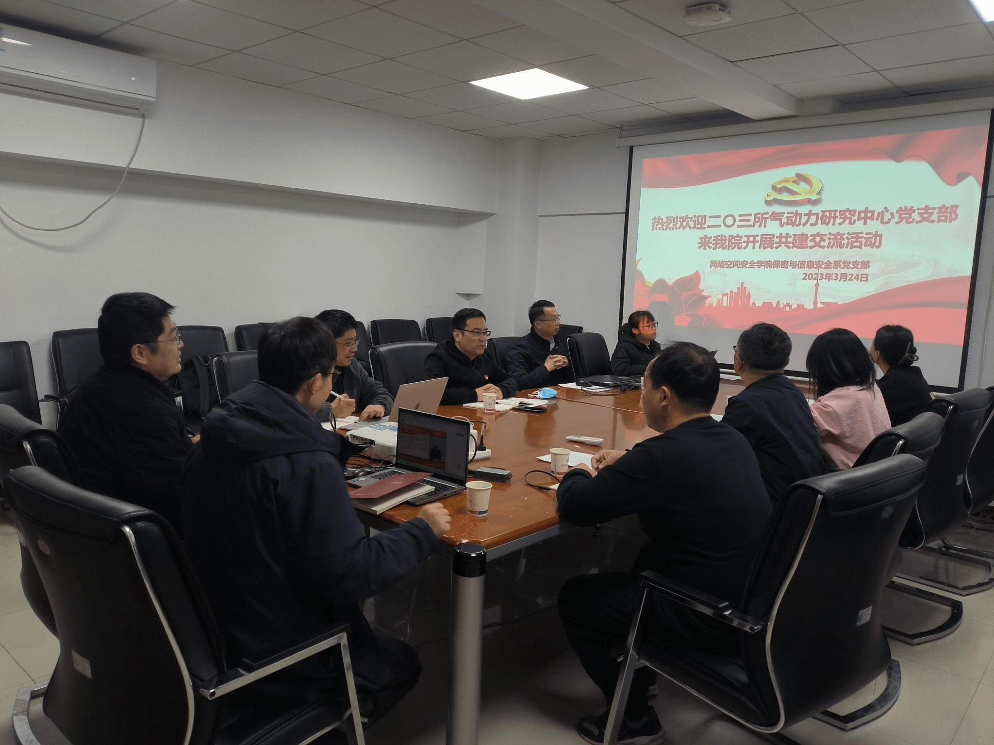为全面构建“以共建促党建、以共建促合作、以共建促发展”的党建工作新格局,进一步落实共建双方全方位、深层次的合作交流,3月24日,太阳成tyc122cc保密与信息安全系党支部与中国兵器203所气动力研究中心党支部在爱生楼401会议室开展了党建共建交流活动。会议由公司党总支副书记禹亮主持,双方支部成员参加了本次共建交流活动。