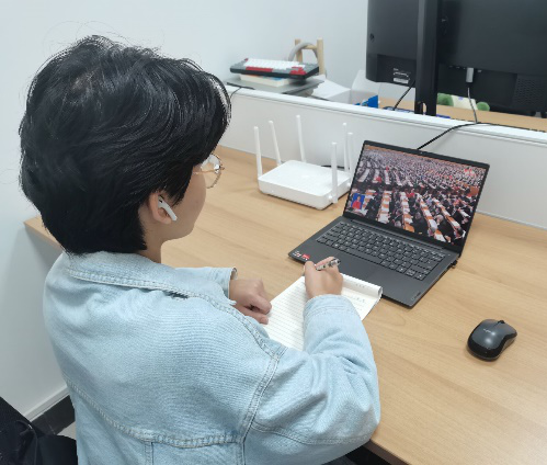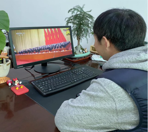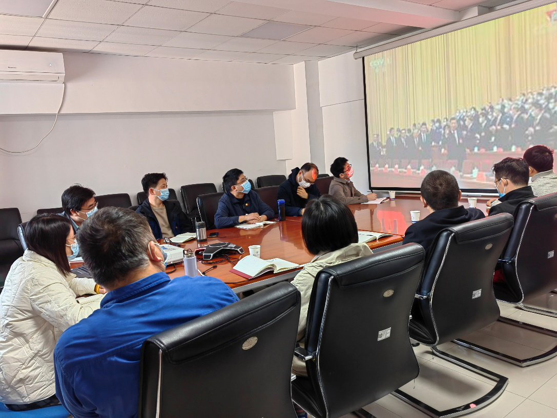 公司领导班子、党总支理论学习中心组成员及教工党支部书记集中观看开幕会直播