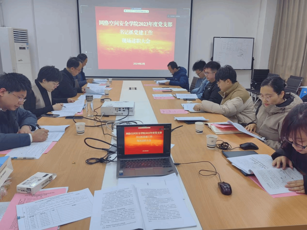 随后,三位教职工党支部书记依次进行述职。各位党支部书记重点围绕深入学习贯彻党的二十大精神、落实基层党建工作重点任务、强化党支部政治功能和组织功能、做好师生思想政治教育、落实全面从严治党要求等方面以及支部工作中存在问题和下一步计划等进行述职。述职后,张文涛对述职情况进行了总体点评。他肯定了三个教职工党支部在教工思想引领、助力教工成长、专注人才培养工作、谋划公司大事、党风廉政建设方面取得的成绩和形成的特色,强调在新的一年里,教工党支部要进一步发挥战斗堡垒作用和先进引领作用,团结带领支部党员和联系群众聚焦“127”发展目标和一流示范网安公司建设指标,开动脑筋,攻坚克难,为完成公司建设目标作出积极贡献。